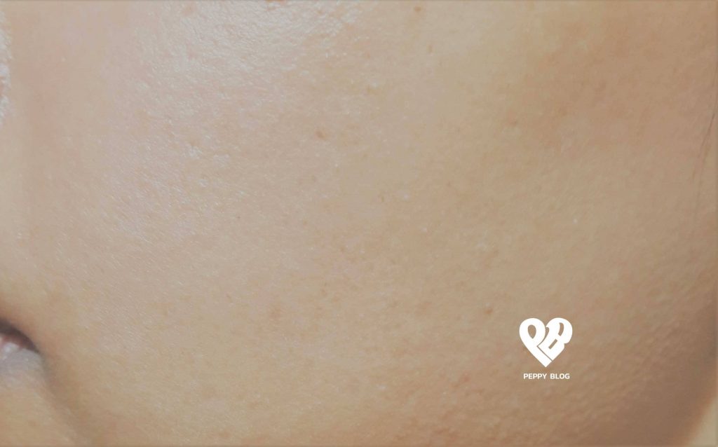Ignore the particles sticking to my hair. I took this photo right after the peel off mask. 🙂 As you can see, My Pores shrinked too and seems invisible.
