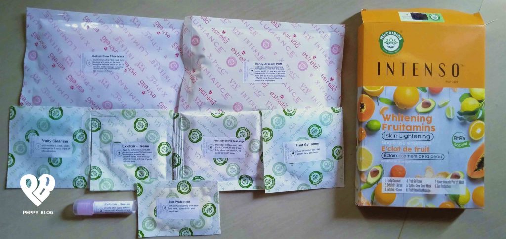 Intenso Whitening Fruitamins Skin Lightening Facial Kit has eight steps to pamper yourself. By the time you finish massaging your face, your face will really soaked in oil.