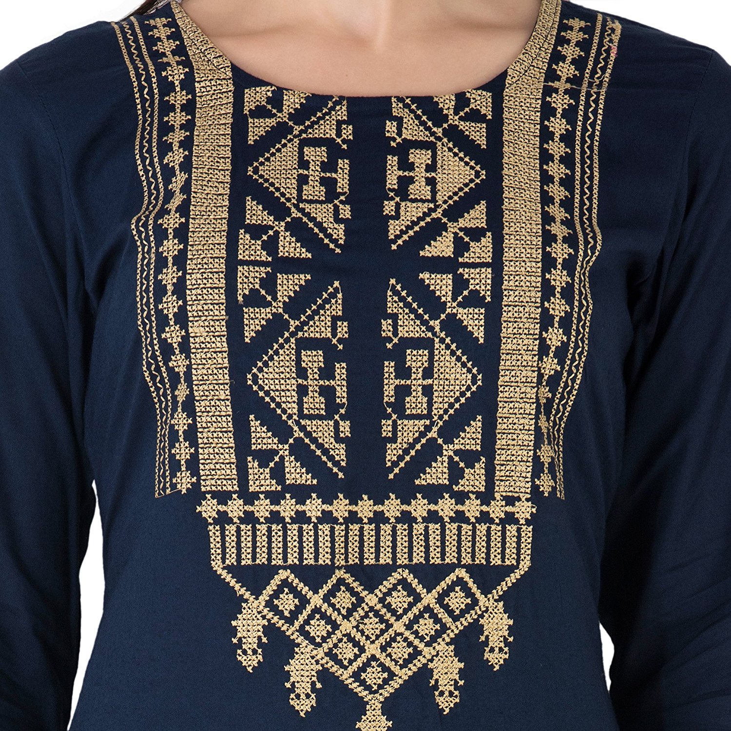 This unique embroidery design on the 3/4 sleeve Knee long kurti by M&D makes it a Differently styled trending attire. The Cotton fabric rigorously quality checked, and at the most reasonable pricing because we are the manufacturers of the product whose priority is customer satisfaction.